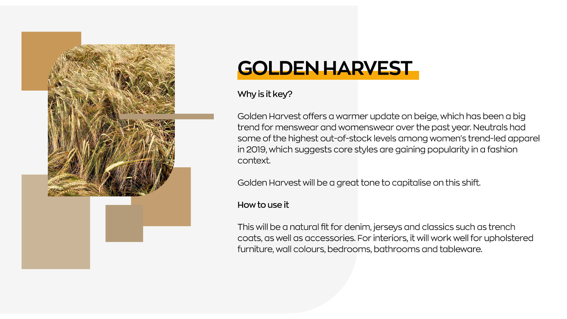 Brown has transitioned from a core to a fashion tone throughout 2019 and will become an important colour story at a mass level for S/S 21. It will be particularly important for leather accessories and footwear, and should be evolved with a focus on natural wood and foliage tones.