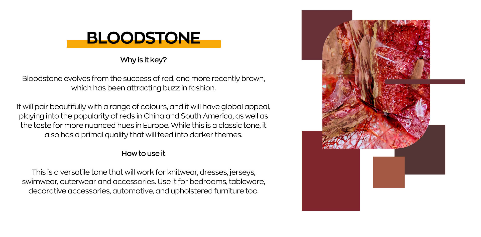 Key for bags, belts and leather footwear, from mass to luxury markets. Drop from spring transitional onwards.