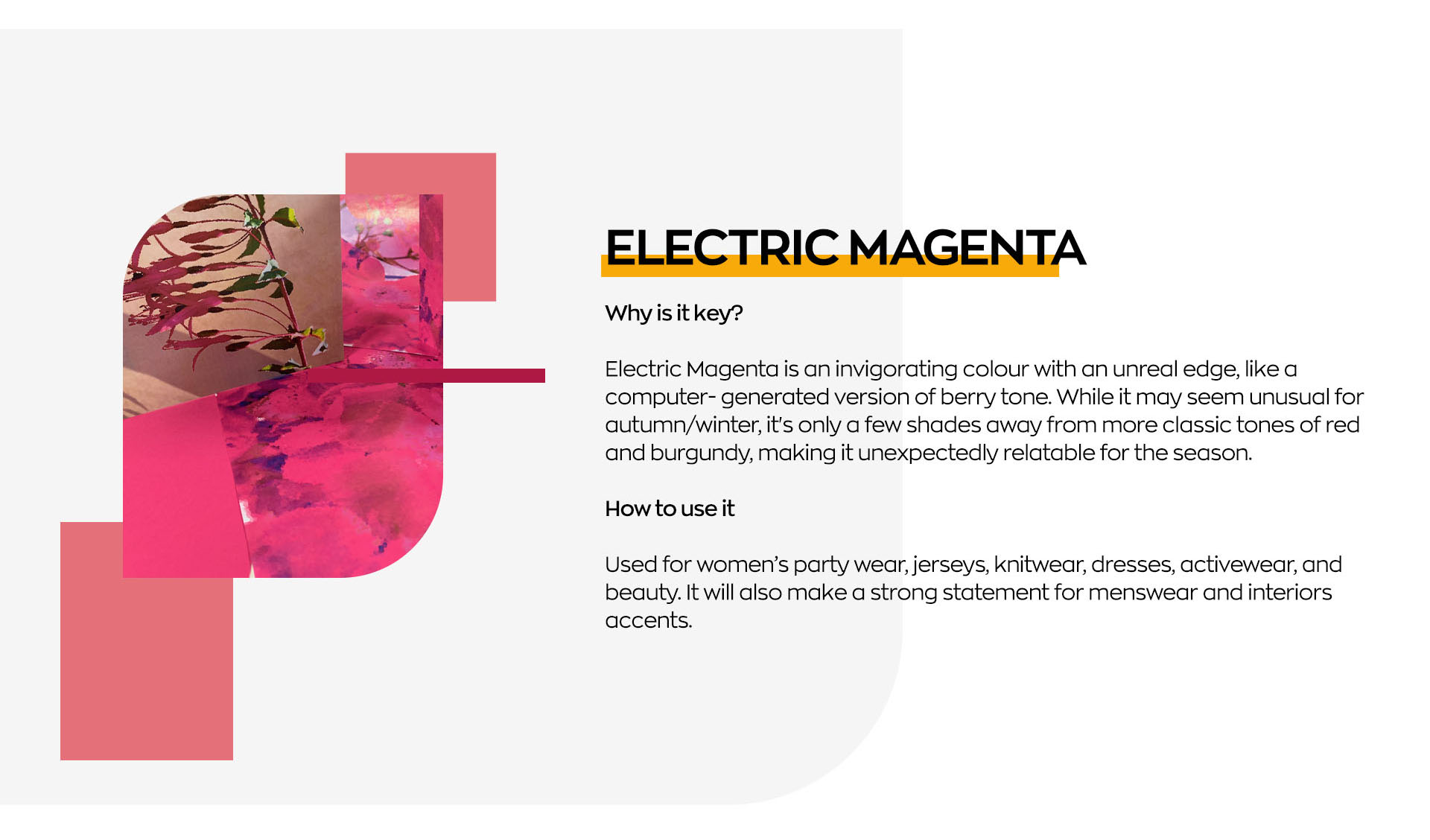 These bold colours will have a heightened impact when used together, and will be especially relevant for sports, vacation and festival ranges.